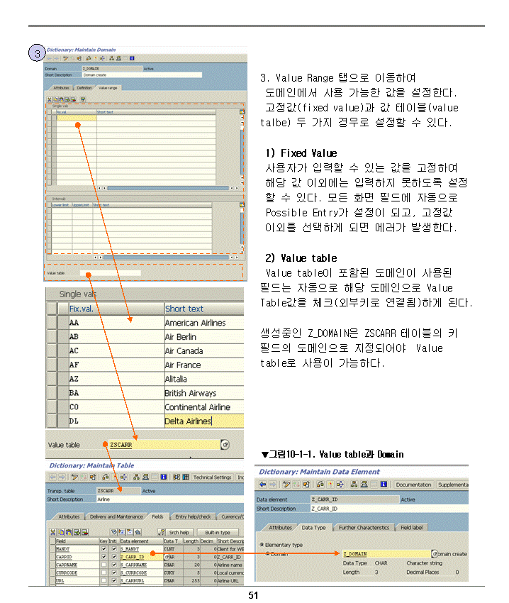ㅁ. 외래 키를 생성하면 외래 키 필드가 체크 필드를 가리킨다. 체크 필드는 F4 확인 시 도메인의 벨류 테이블의 값을 보여주지만, 외래 키 필드는 체크 필드에서 삽입해둔 값을 보여준다. (벨류 테이블에 AA부터 UA까지 있다면, 체크 테이블엔 AA부터 AC까지 입력했다.)